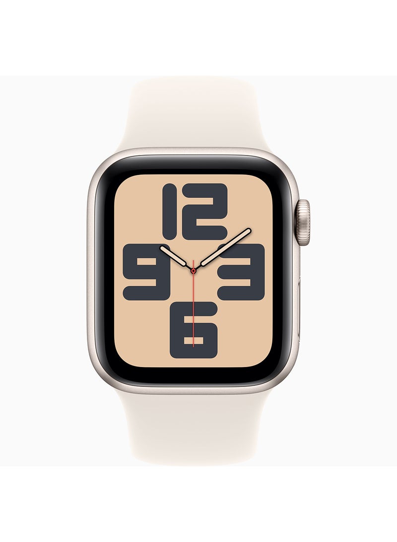 “Apple Watch SE (2024) GPS 40mm with Starlight Aluminium Case and Starlight Sport Band, offering fitness tracking, notifications, and a sleek design.”